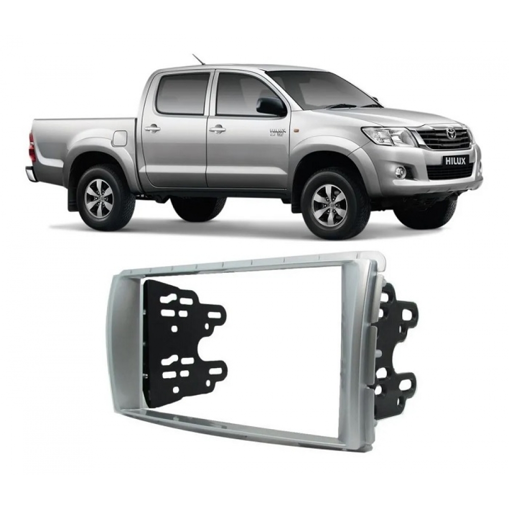 Moldura Para Aparelho Som/Dvd 2din Toyota Hilux Srv Após 2012 - Prata - Com Moldura Intermediária E Suportes De Fixação Laterais. | EPX286.