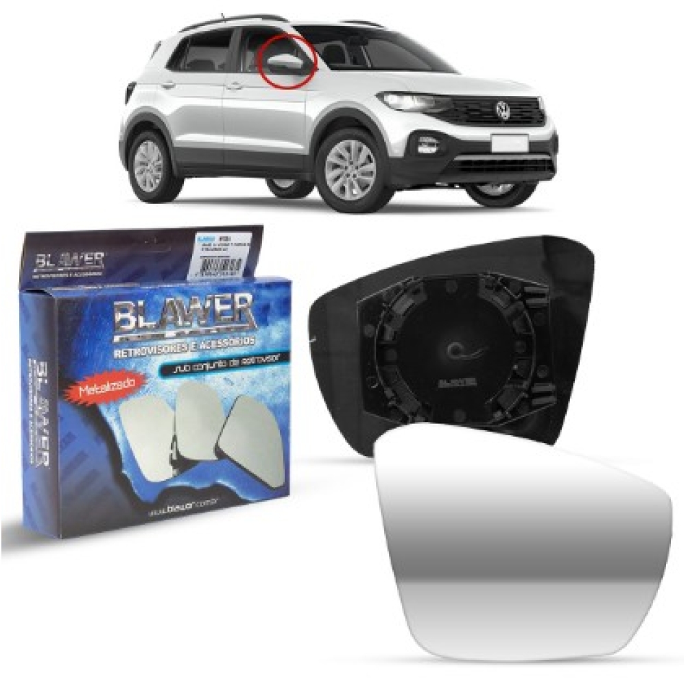 Lente Do Retrovisor Com Base Polo 2022 A 2025 Vw/ T-Cross 2019 A 2022 Metalizado Lado Direito