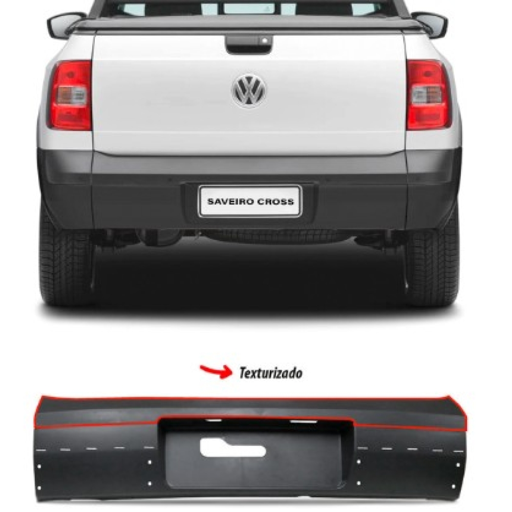Para-Choque Envolvente Traseiro Central Saveiro Cross Gv/ Gvi 2008 A 2016 Liso Preto Com Furo Para Moldura E Sem Furo Para Sensor