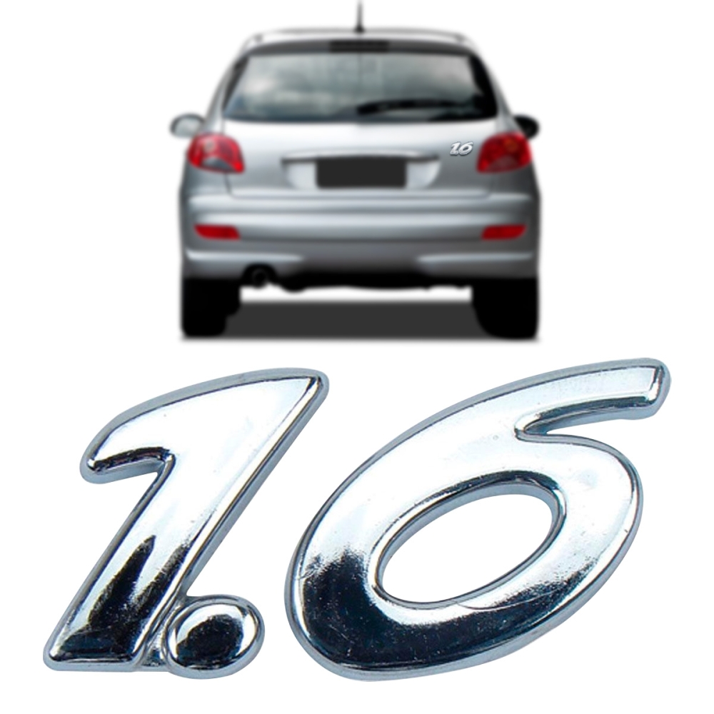 Emblema '1.6' Para Os Veículos Peugeot 206 De 1999 Até 2008 e 207 De 2009 Até 2013.