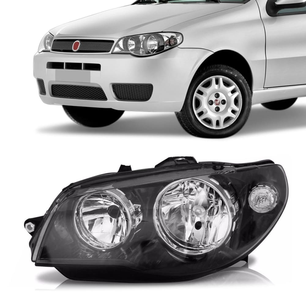 Farol Foco Duplo Com Máscara Negra e Canhão Metalizado Para Os Veículos Fiat Palio De 2004 Até 2016, Weekend, Siena e Strada De 2004 Até 2012.
